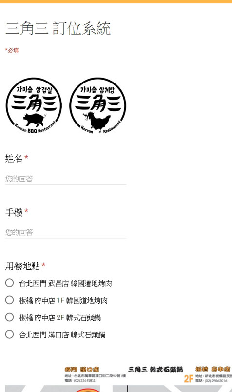 、用餐地點、用餐日期 及 時間、人數,按下 提交 即可。 ∼歡迎蒞臨本店∼ |